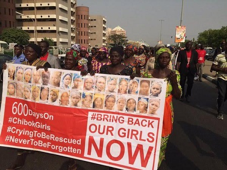 Parents of the missing Chibok girls led by the Bring Back Our Girls campaign group have entered into Aso Rock villa and now sitting at the Banquet hall insisting to met with the President.