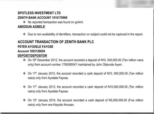 A report on how the embattled Governor of Ekiti, Ayodele Fayose of the People's Democratic Party, PDP, ferried huge sums of money from Zenith bank Plc and other accounts has surfaced on social media.