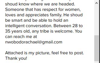 A beautiful Nigerian lady based in Lagos State is currently seeking a real man to get serious with in life.