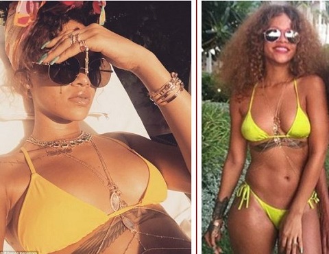American singer,Rihanna is currently taking a vacation in Barbados, her home country. She was photographed wearing a yellow bikini.